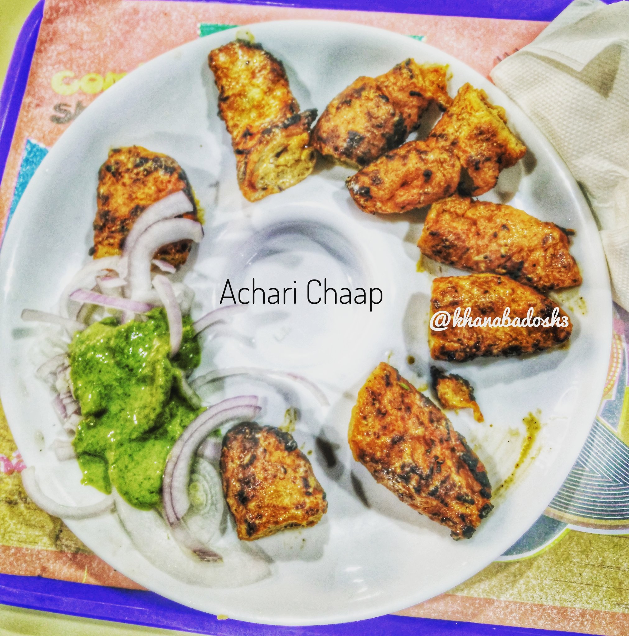 Achari Chaap - अच र स य च प र स प और बन न क व ध achari soya chaap recipe in hindi. Achari Chaap / Consists of 1 pc chicken achari chaap ,1 bbq chicken chaap, 4 pcs large luchi & 2 drinks.