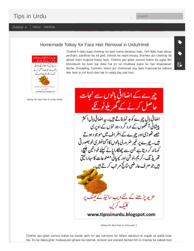 Homemade Totkay For Face Hair Removal In Urdu Hindi - Totkey, beauty tips, & precipices in urdu/hindi language.