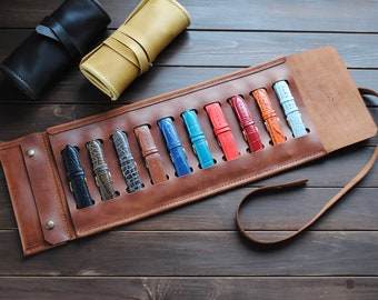 Roll Up Watch Case Organizer I Black Travel Case Tech Swiss - See more ideas about handmade watch strap, leather watch strap, leather handmade.