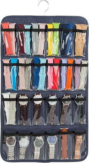 Amazon Com Watch Band Holder Hanging Watch Strap Holder Compatible With Watches Watch Band Storage Organizer Stores 48 Watch Bands Or Organizer For 24 Watches Blue Home Improvement - Watch strap organizer storage bag plain anti scratch watchband holder gray.